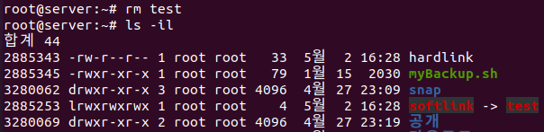 이때 test 파일(원본파일)을 삭제하면 다음과 같이 나타난다.