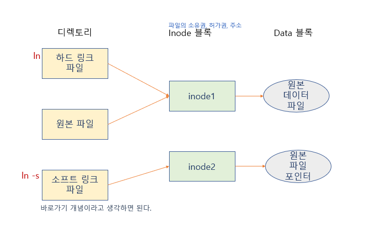 링크에는 하드링크와 소프트링크(심볼릭 링크)가 있으며 그림과 같이 정리 할 수 있다.
