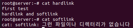(지웠다가 같은 이름으로 파일을 생성 시 soft링크는 새로만든 파일을 가르키지만 hard링크는 처음 만들었던 파일의 내용을 가르킨다.)
